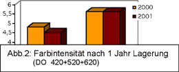 Bordeaux 1999, Cabernet Sauvignon; Weine mit LALLZYME EX-V haben erhöhten u. stabileren Farbgehalt (Abb. 1 u. 2)
