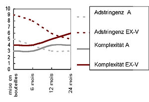 Abb.4 : Cabernet Sauvignon 1999 Bordeaux, EX-V reduziert Adstringenz u. steigert Kom-plexität d. Weine während Flaschenlagerung Entwicklung der Weine von Abfüllung bis 24 Monate Lagerdauer.