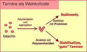 "Reaktive" Tannine haben eine Tendenz zur Agglomeration mit anderen Tannin- u. Eiweißmole-külen; es kommt zur Sedimentation dieser schweren Moleküle. Die Schutzwirkung eines ausreichend hohen Gehaltes an Polysacchariden in Wein verhindert das Entstehen von Sedimentationskolloiden mit hohem Molekulargewicht.